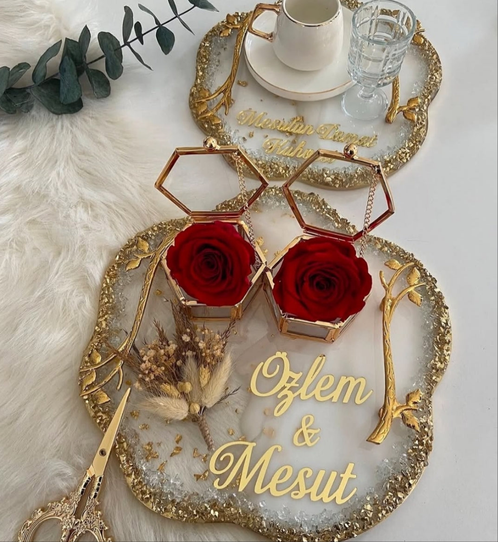 Apportez une touche d'élégance à votre cérémonie avec ce plateau raffiné, parfait pour présenter vos alliances et servir un café.