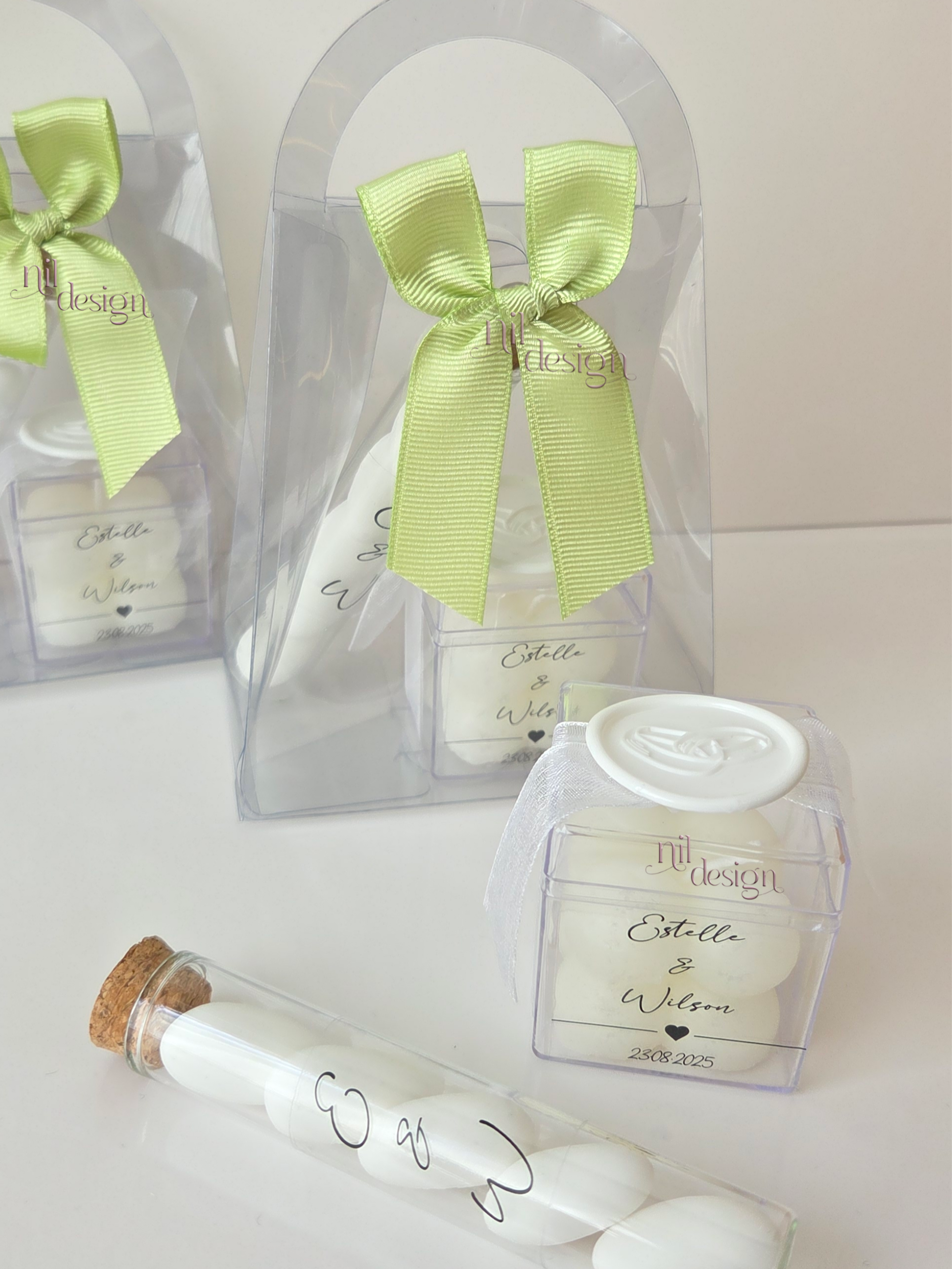 • Vela de burbujas sin olor en su envase de PVC personalizado con etiqueta adhesiva