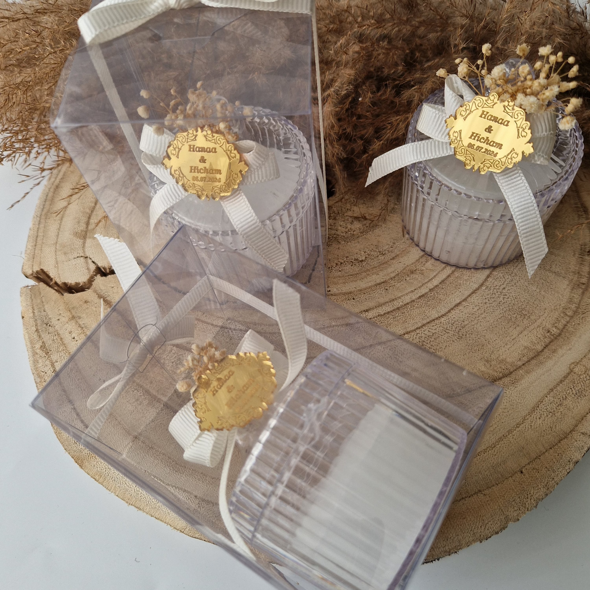 Sorprenda a sus invitados con velas presentadas en una caja de dulces, combinando encanto y practicidad para iluminar sus preciosos momentos.