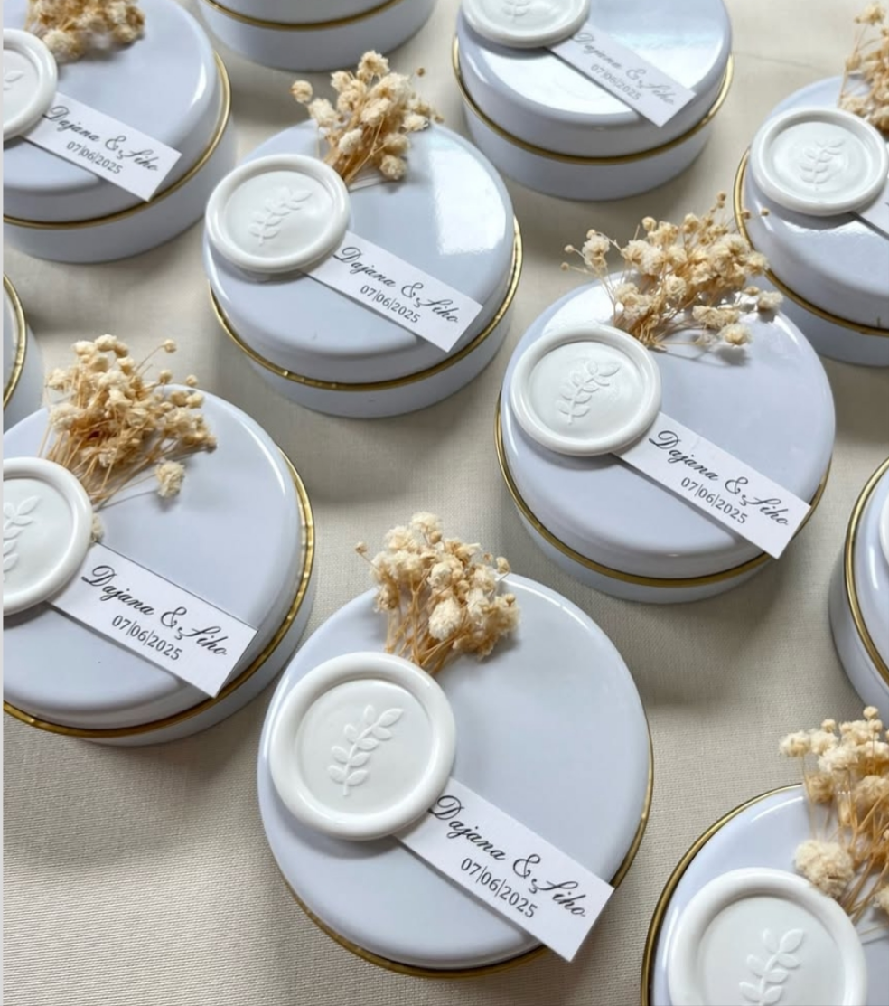 Offrez à vos invités une bougie originale et raffinée, présentée dans un contenant soigné et personnalisé.