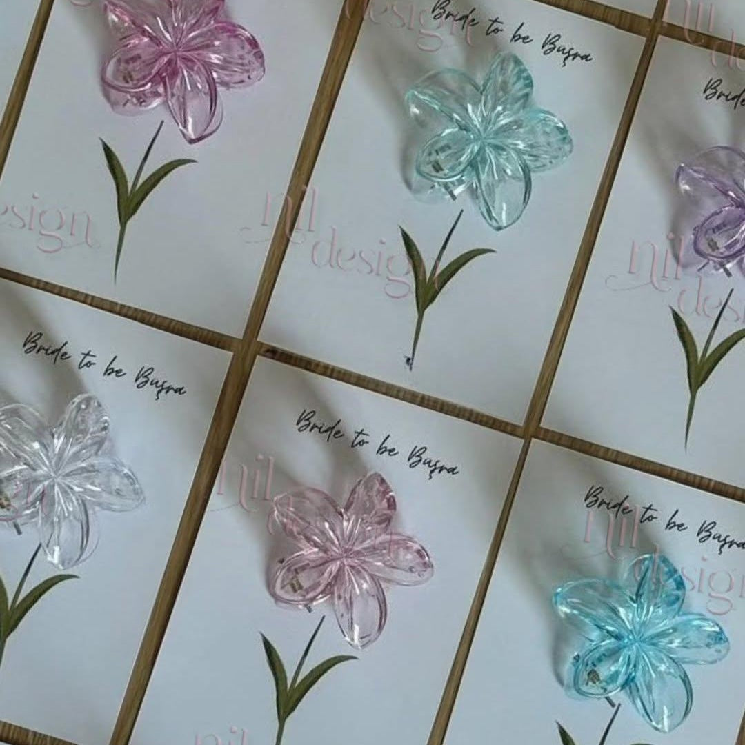 Surprenez vos invités avec cette jolie pince à cheveux en forme de fleur, accompagnée de sa carte élégante. Un cadeau pratique et raffiné, idéal pour vos événements. ✨