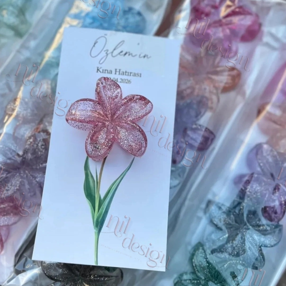 Pince à cheveux fleur scintillante avec carte personnalisée