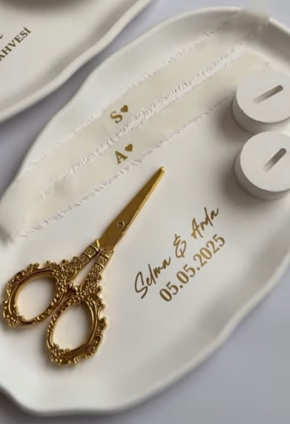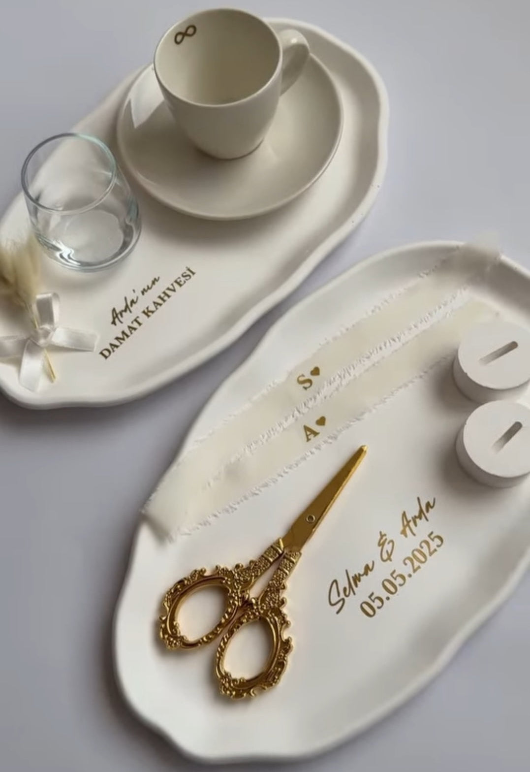 Ce plateau en jesmonite, confectionné à la main, apporte une touche d’élégance à votre cérémonie. À la fois délicat et pratique, il met en valeur vos alliances et sublime le service du café.