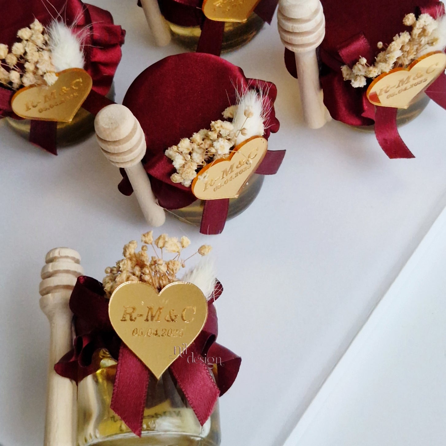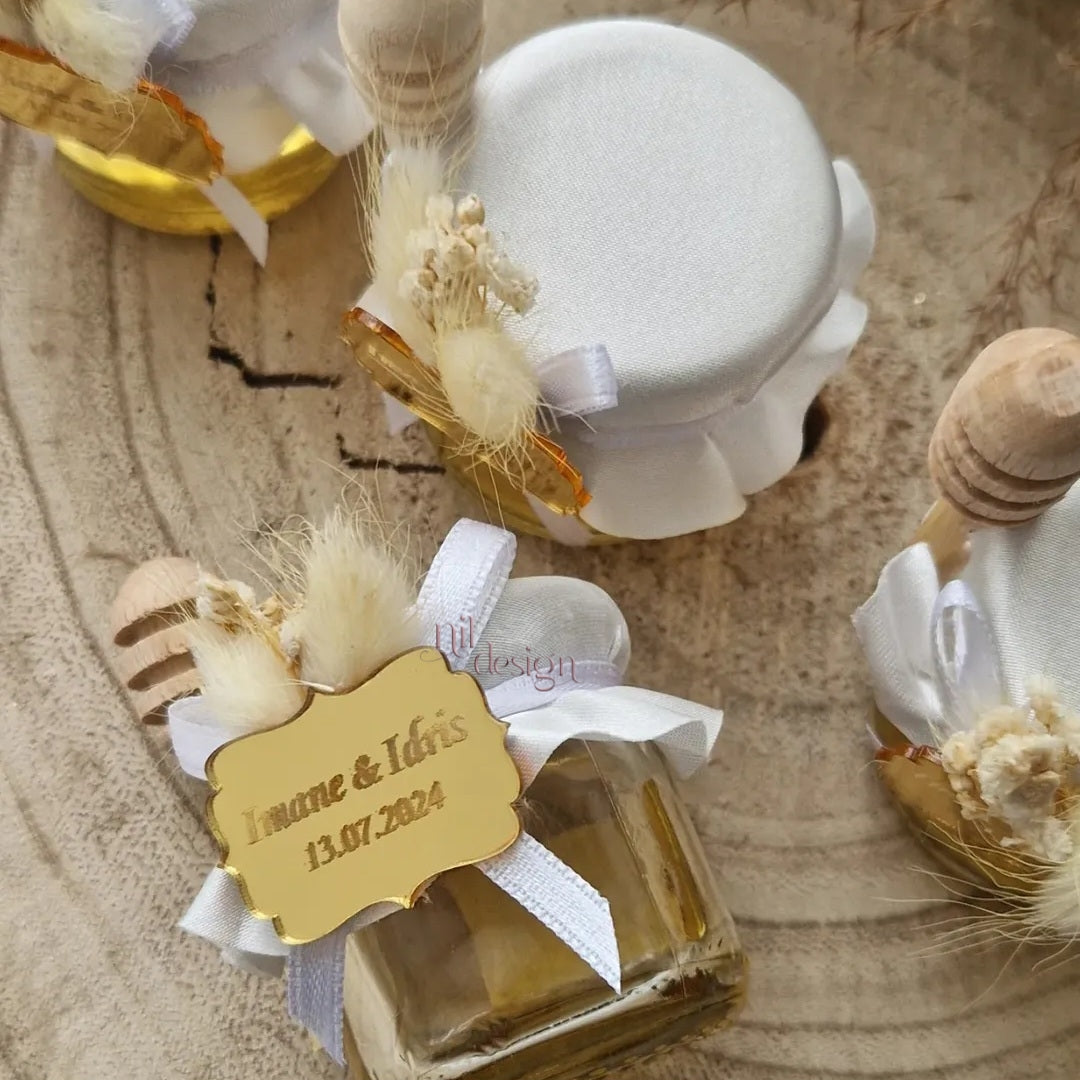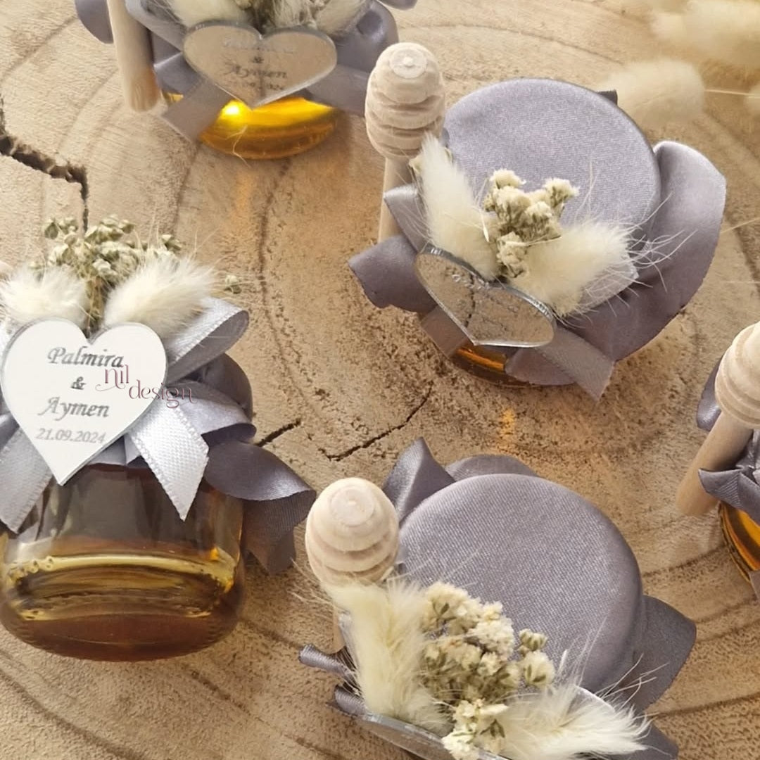 Un pot de miel sublimé par un tissu satiné pour une touche élégante et raffinée.